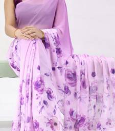 Violet color all over floral printed work weightless saree with unstitched blouse