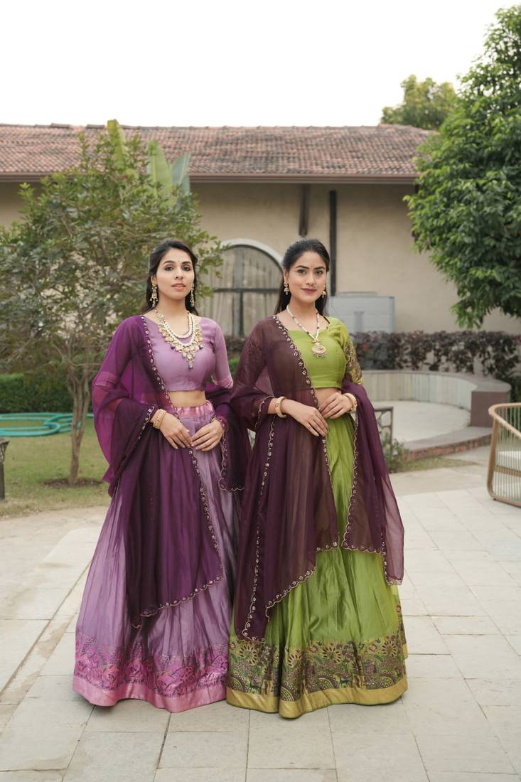 | Product Description | A Majestic Combination Of A Silk Skirt In Deep Jewel Tones And A Bright, Contrasting Dupatta, Offering A Perfect Silhouette For Weddings And Grand Celebrations, A Beautiful Pair Of Lehenga,Blouse N Voni To Glame Up A Look |