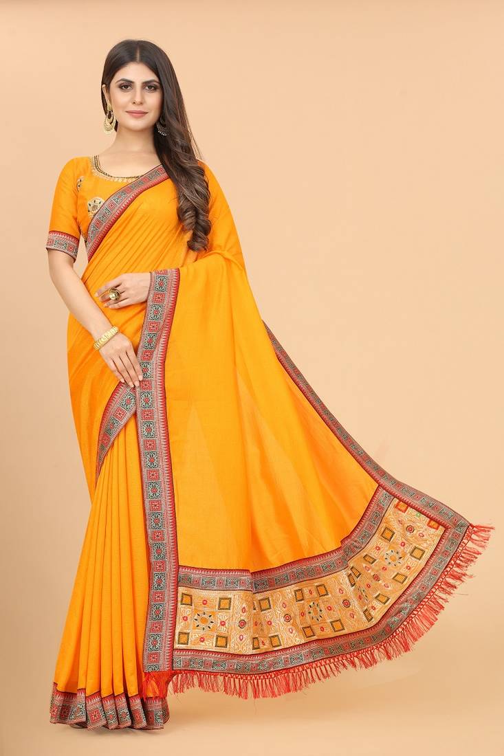 | Product Description | Vichitra Silk Sarees Are Light Weight And Highly Comfortable To Wear. This Gives The Wearer The Luxury Of Silk Like Appearance And High Comfort Levels |