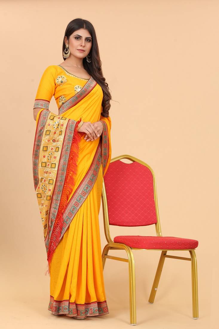 | Product Name | Yellow Embroidered Silk Saree With Blouse | |