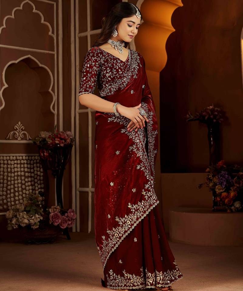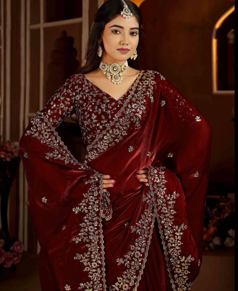 | Product Name | Maroon Color Satin Silk Saree With Heavy Jari Embroidery Work & Designer Blouse | |