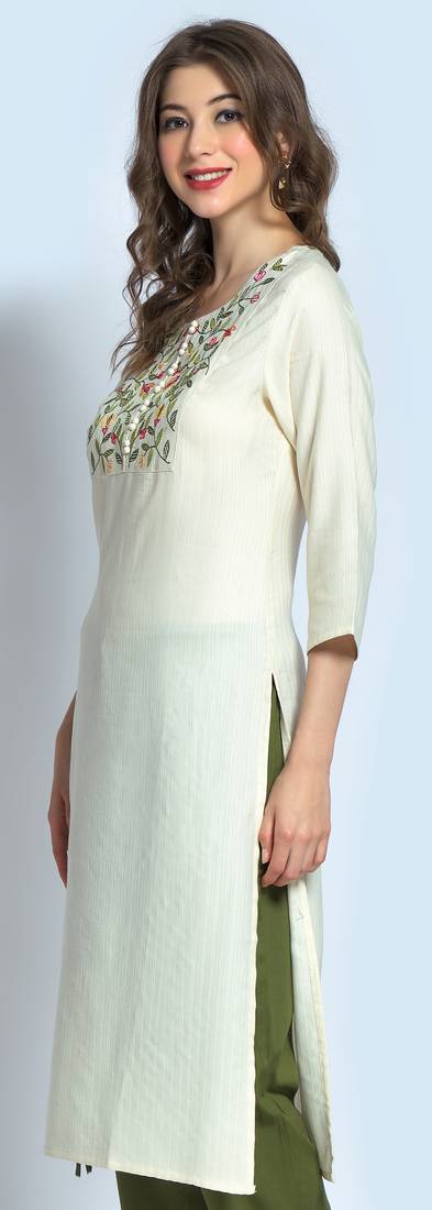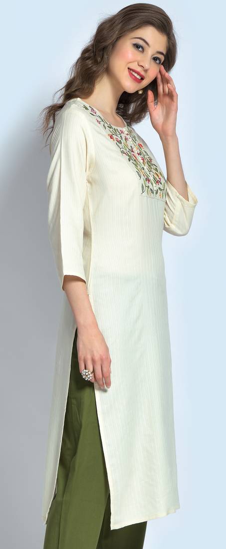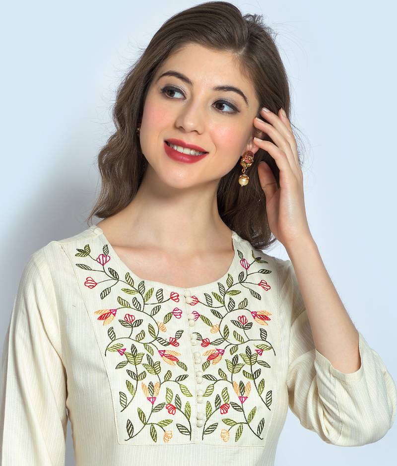 | Product Name | Gruhnaree Off White Floral Yoke Design Short Kurta | |