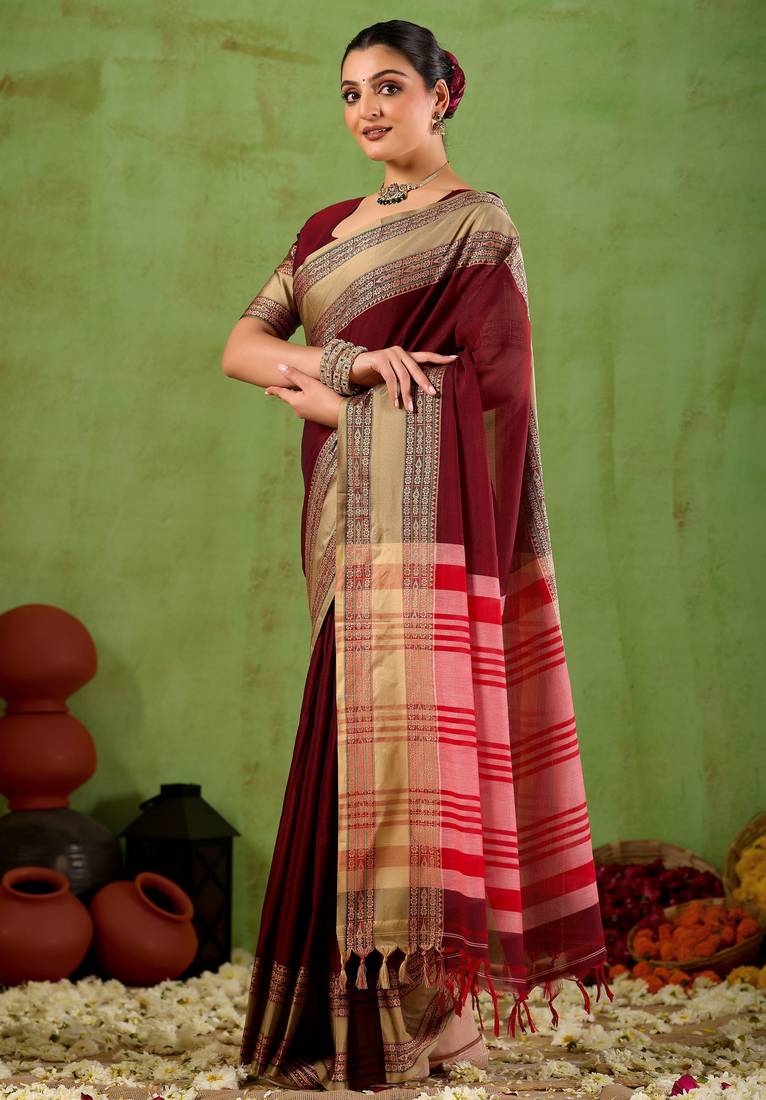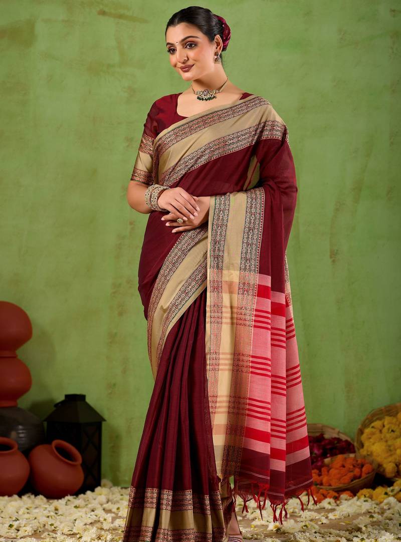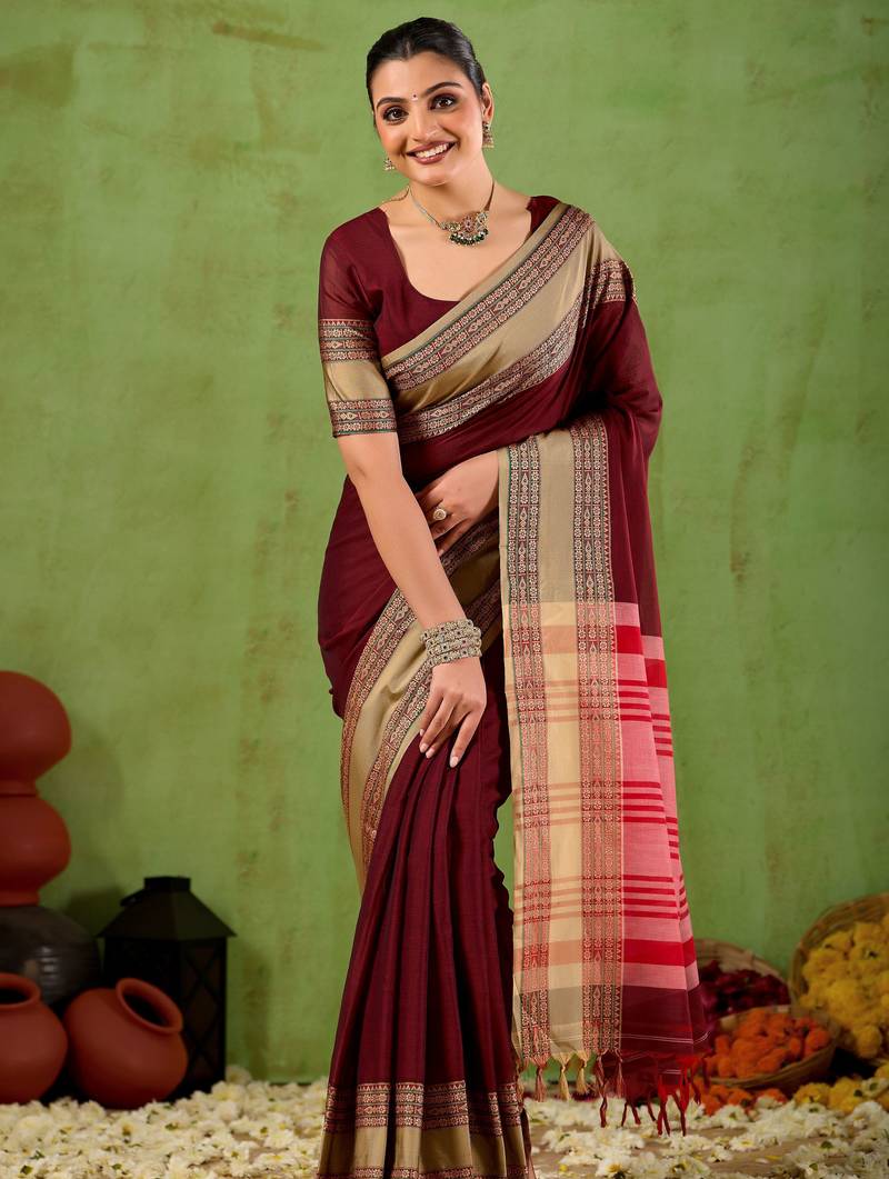Raag varnam maroon narayanpet mercerized cotton saree
