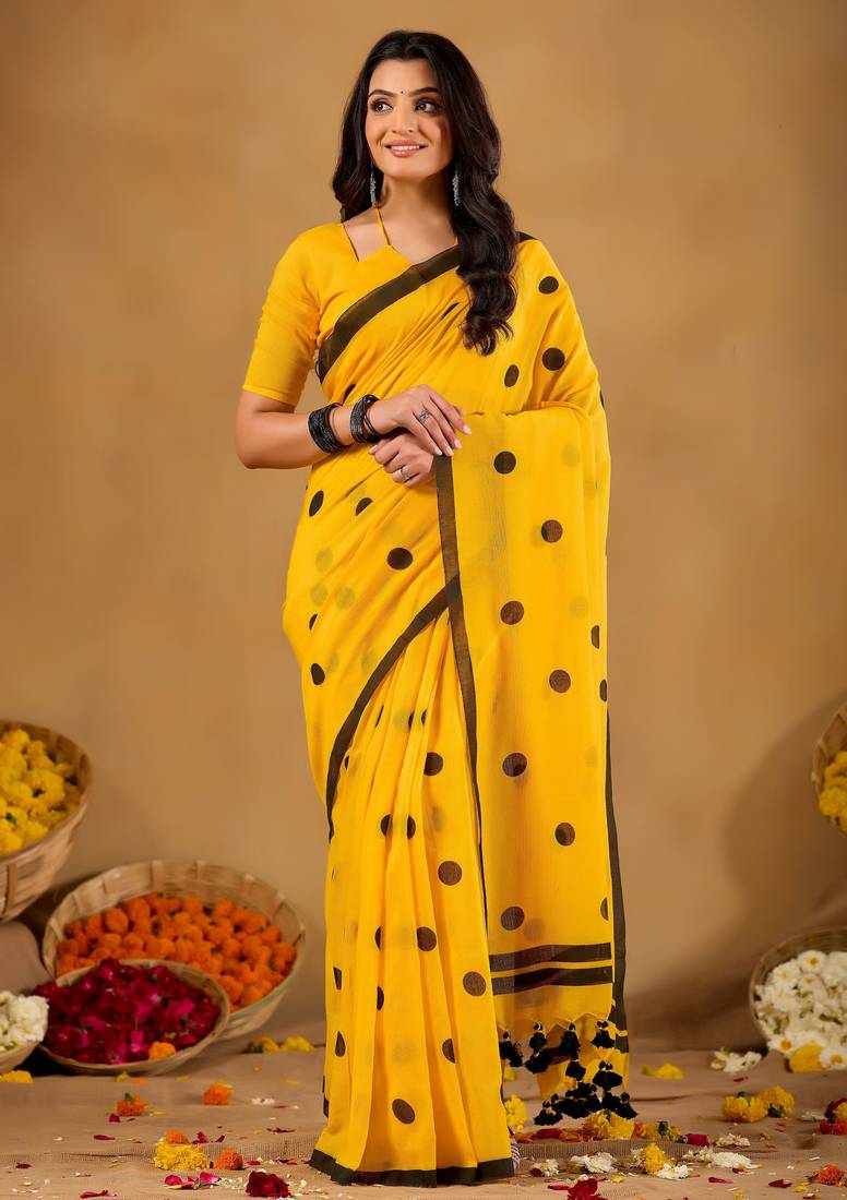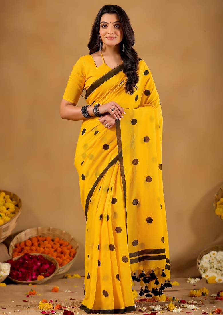 | Product Name | Raag Varnam Mustrad Yellow Handloom Print Cotton Saree | |