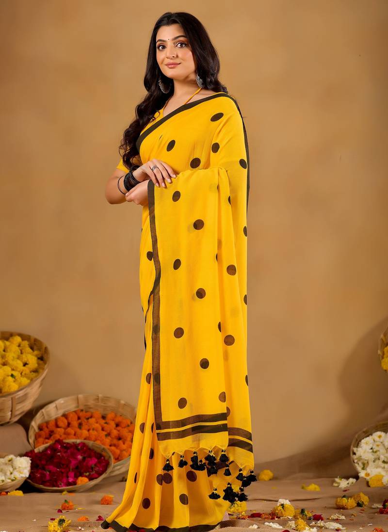 | • | Saree | : | Color- Mustard / Fabric- Cotton |