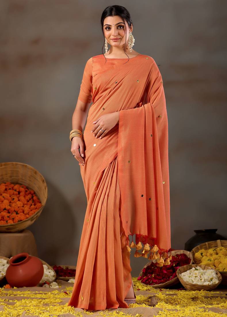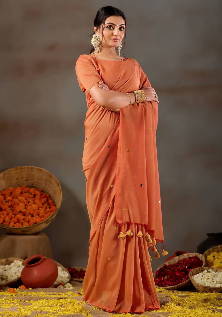 | • | Saree | : | Color- Orange / Fabric- Cotton |