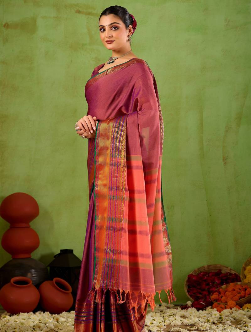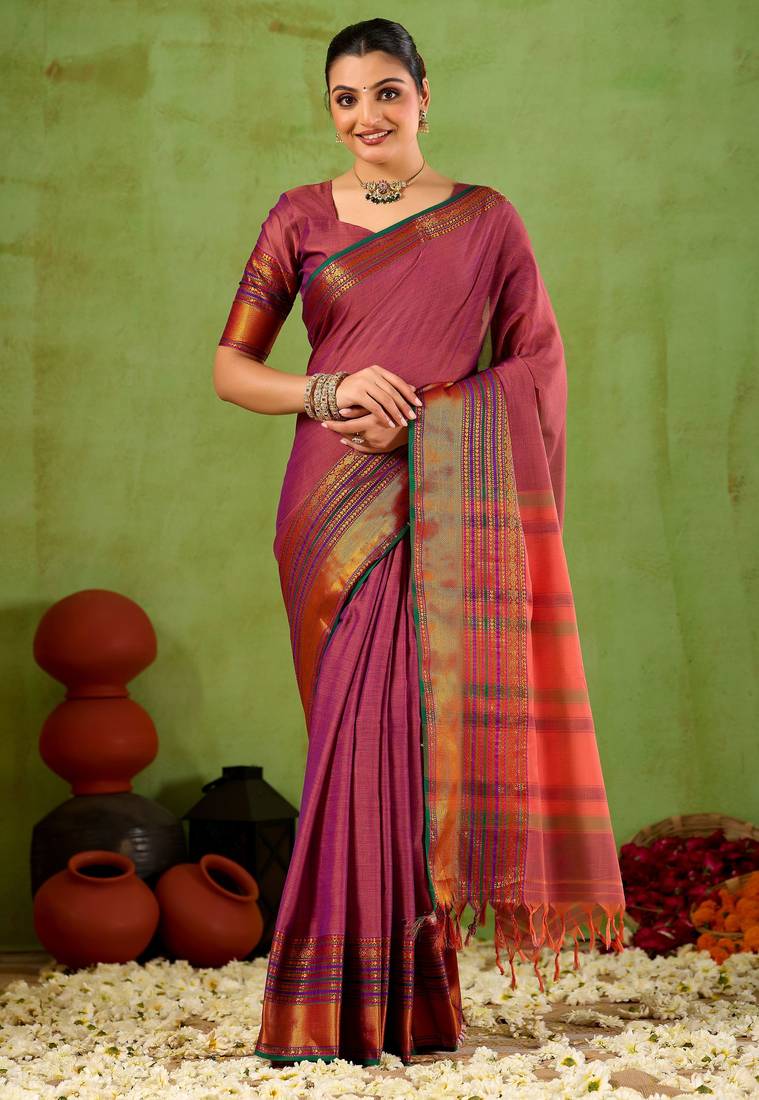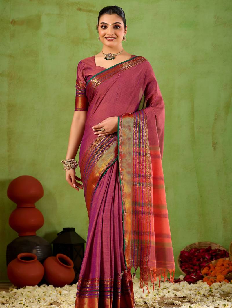 Raag varnam pink narayanpet mercerized cotton saree