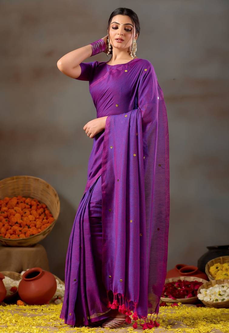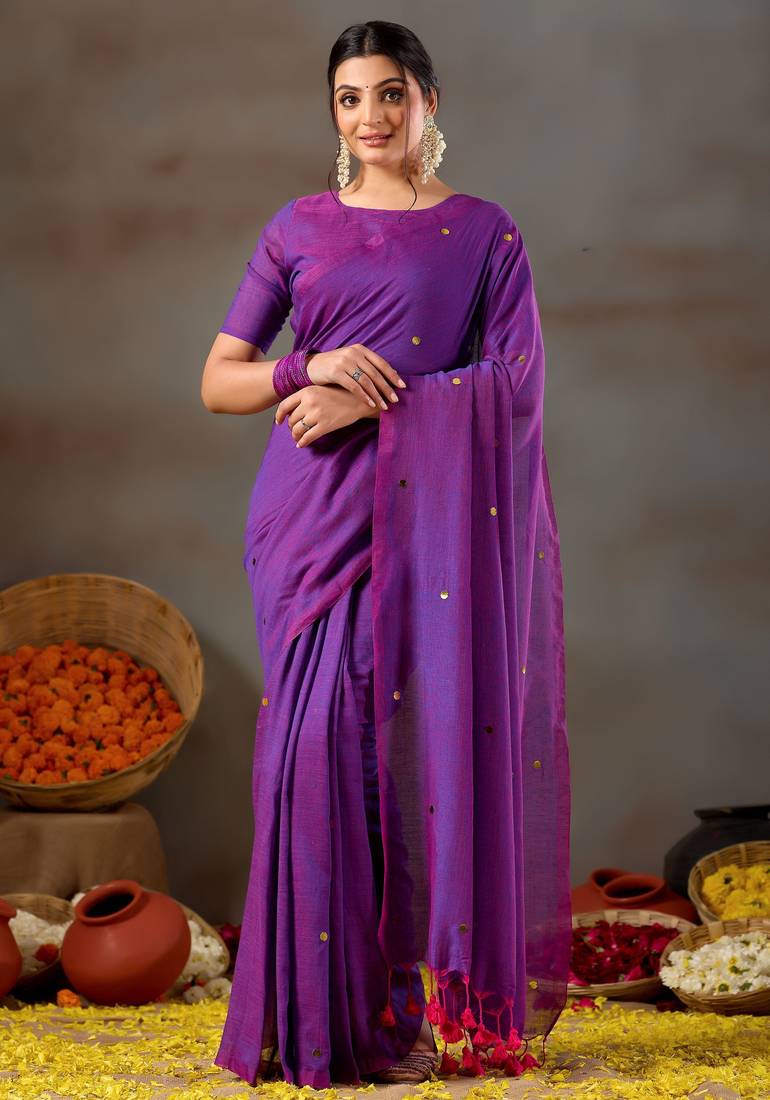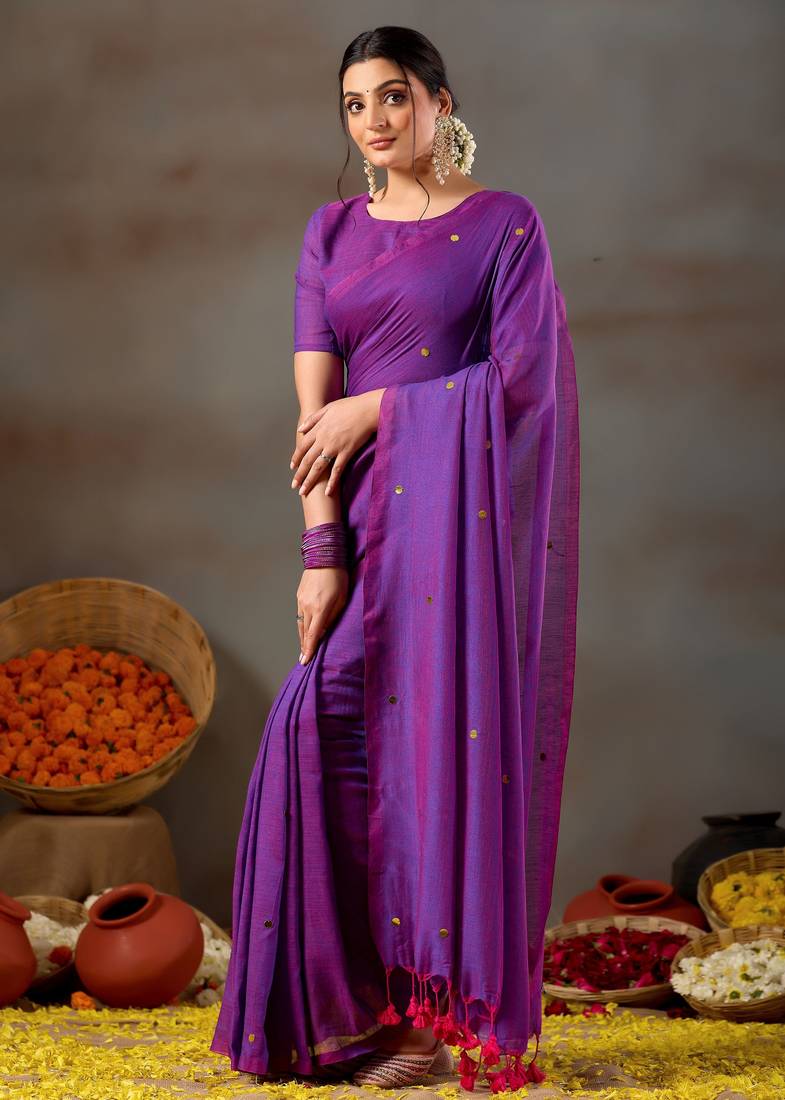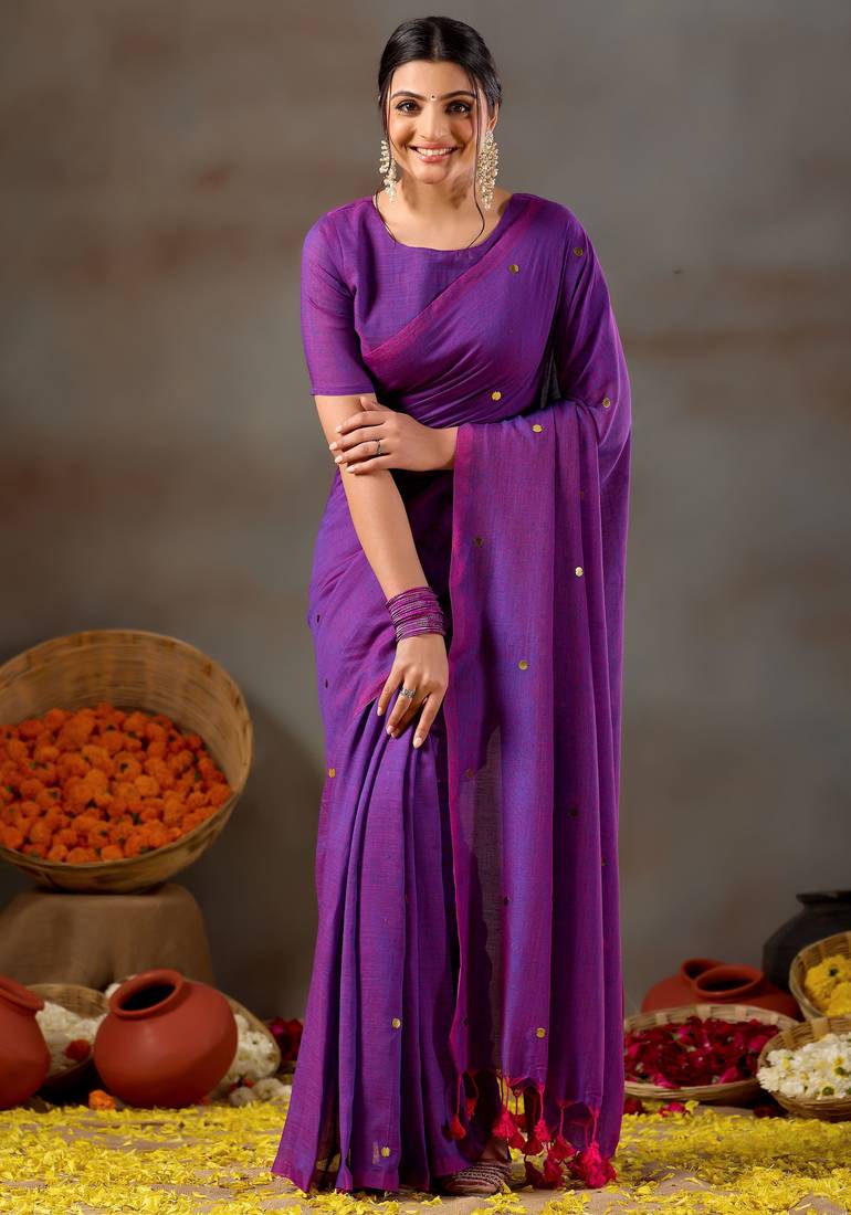 | • | Saree | : | Color- Purple / Fabric- Cotton |