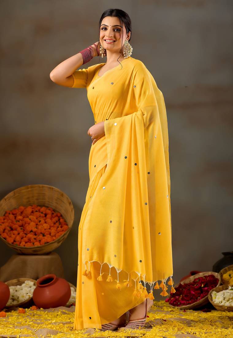 | • | Saree | : | Color- Yellow / Fabric- Cotton |
