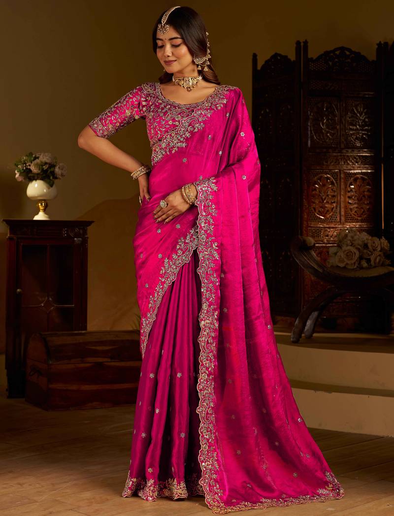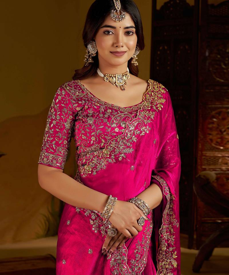 | Product Name | Rani Colour Satin Silk Saree With Heavy Embroidery Work Blouse | |