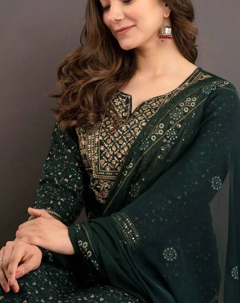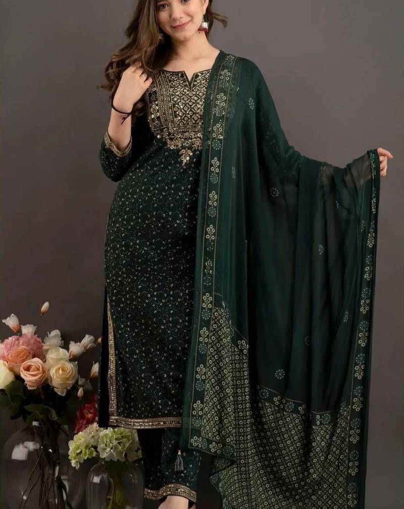 • | Kameez | : | Color- Green / Fabric- Rayon |