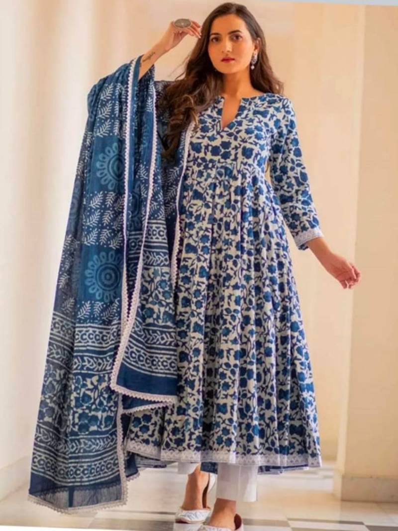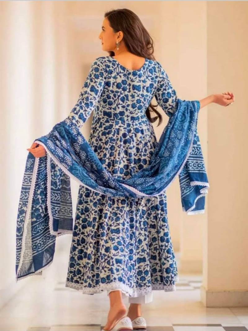 Product Name | White Blue Floral Printed Anarkali Kurti Pant Dupatta Se | |
