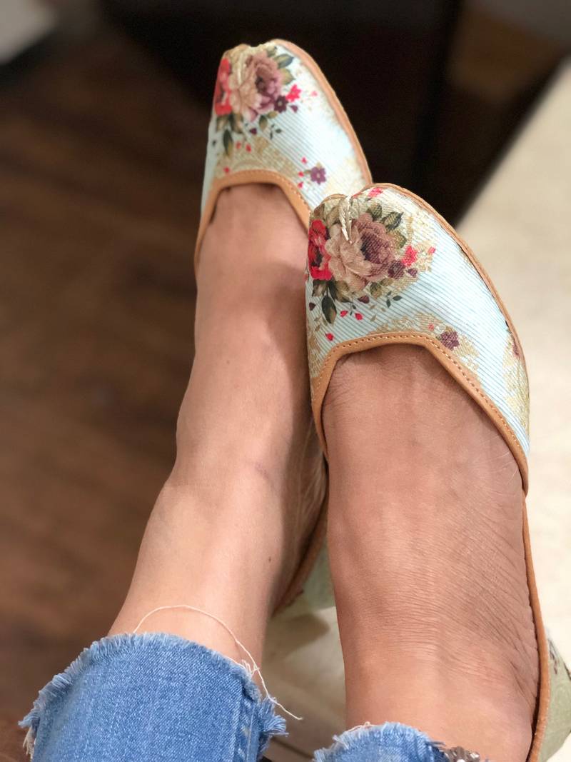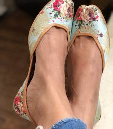 | Product Description | Garden Of Flowers Is The Most Beautiful Paradise Created To Mankind, And This Jutti Is That Same Thought!! Light Blue Base With Golden Motifs And Exotic Spring Flowers In Shades Of Pink, Red, And Wine Colours!!