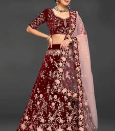 Maroon embroidered velvet semi stitched lehenga