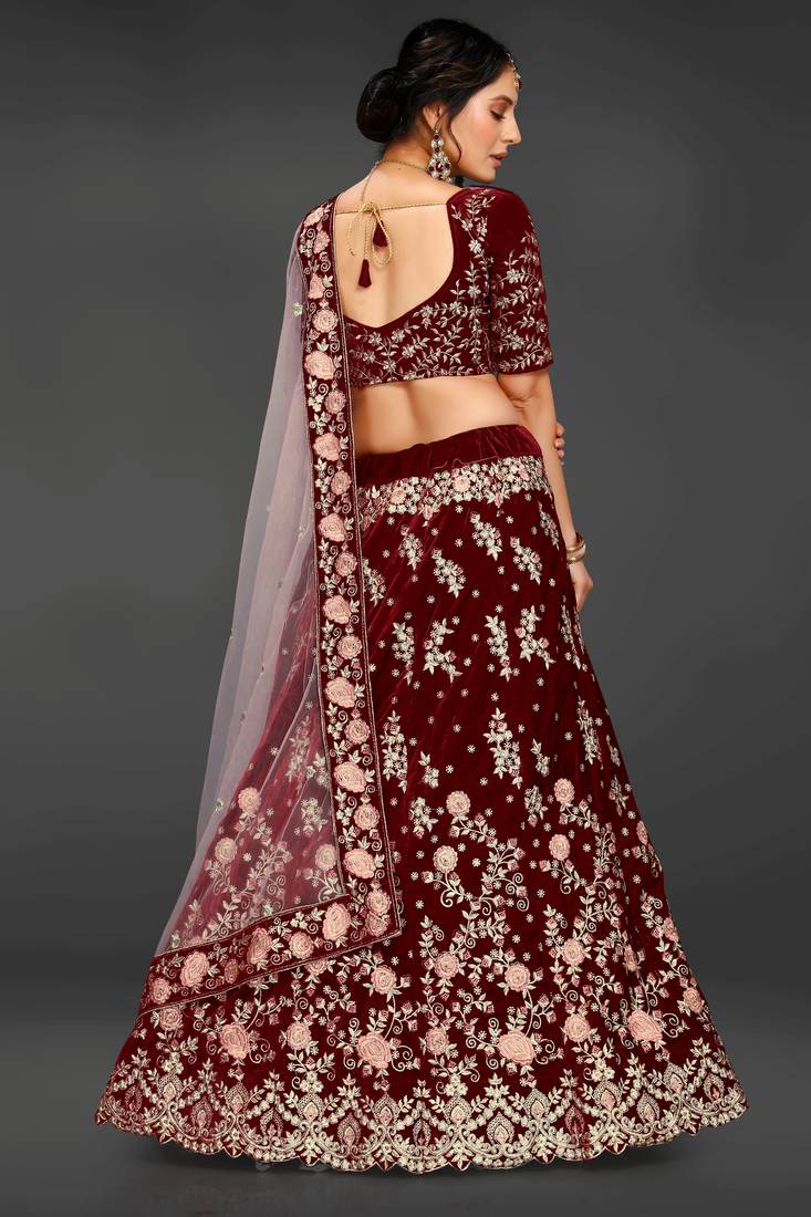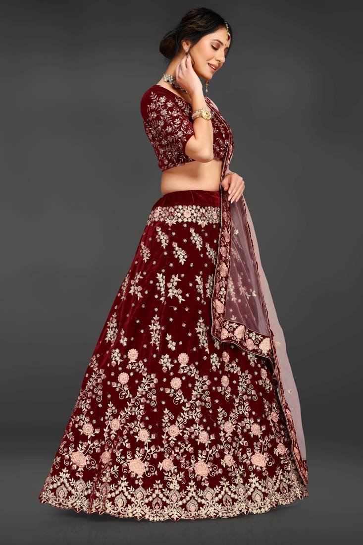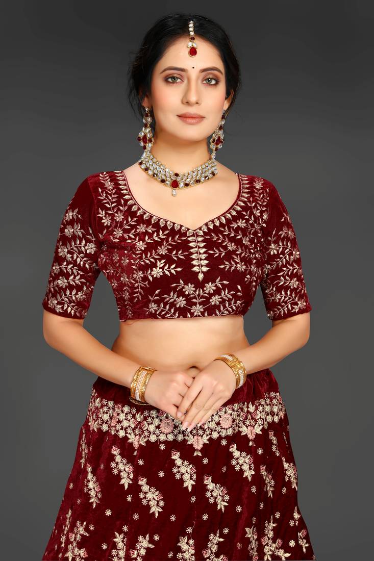 | Product Name | Maroon Embroidered Velvet Semi Stitched Lehenga | |