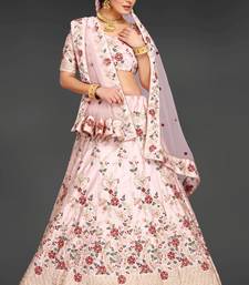 Peach embroidered satin semi stitched lehenga