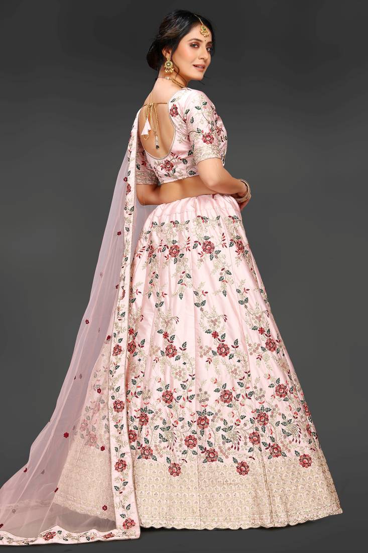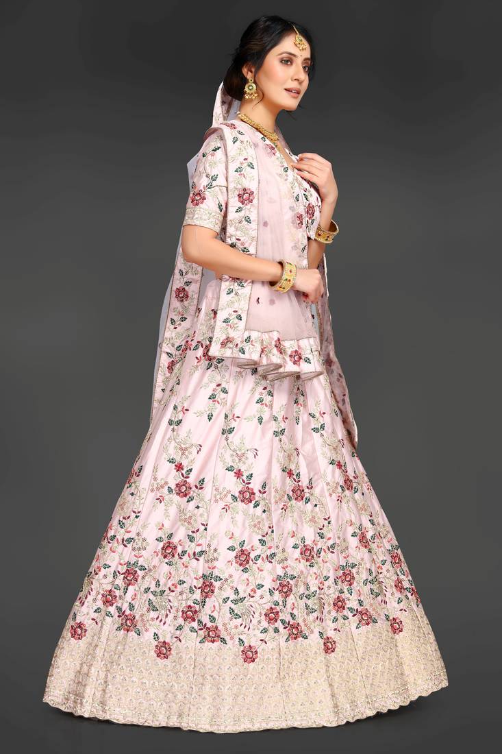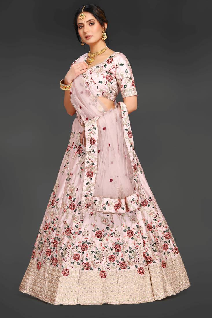 | Product Name | Peach Embroidered Satin Semi Stitched Lehenga | |