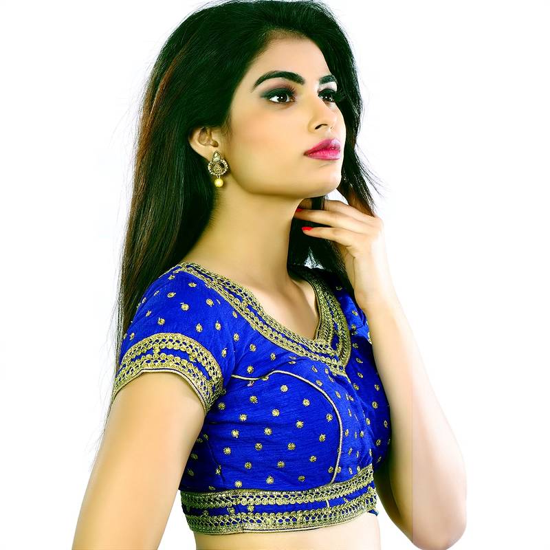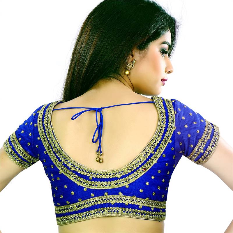 | Product Name | Royal Blue Raw Silk Butti Work U Shape Blouse | |