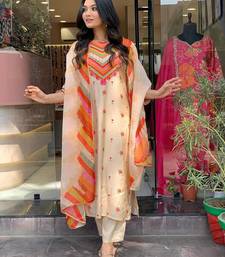Beige color crepe printed sttiched suit stitched