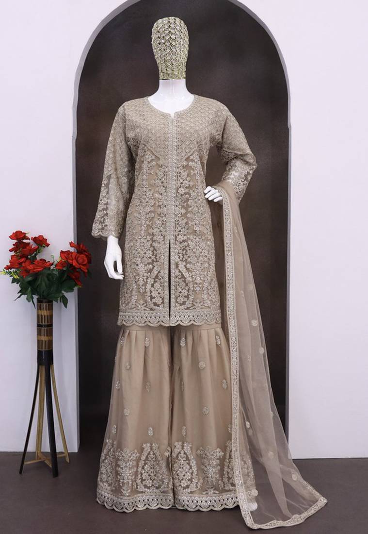 | Product Name | Beige Color Net Embroidered Palazzo Suit | |