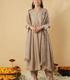 Beige vichitra silk embroidered anarkali kurta set stitched
