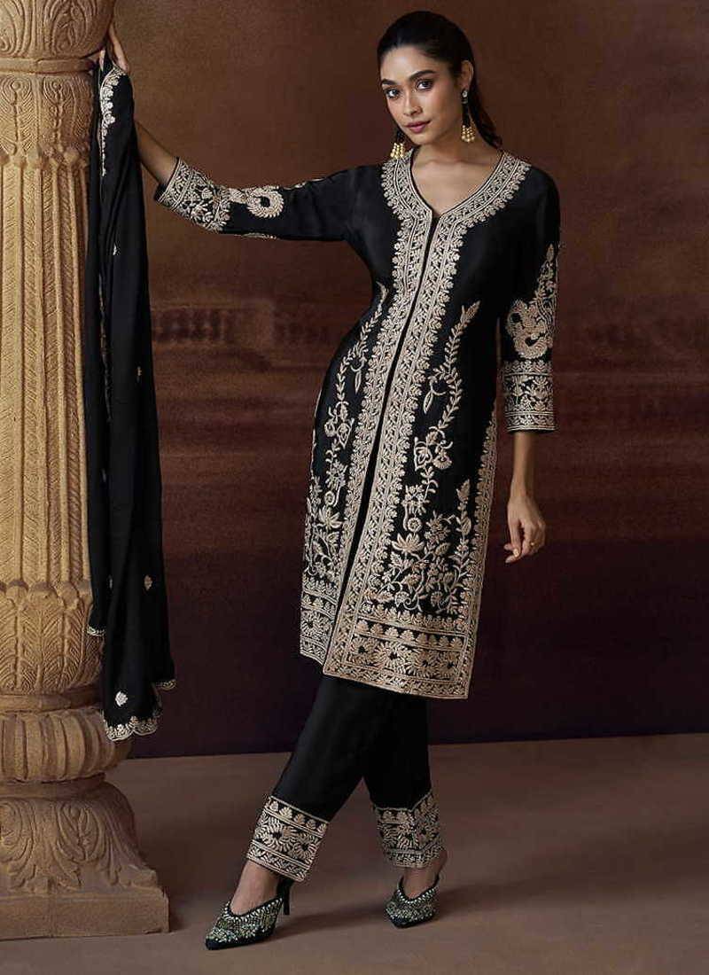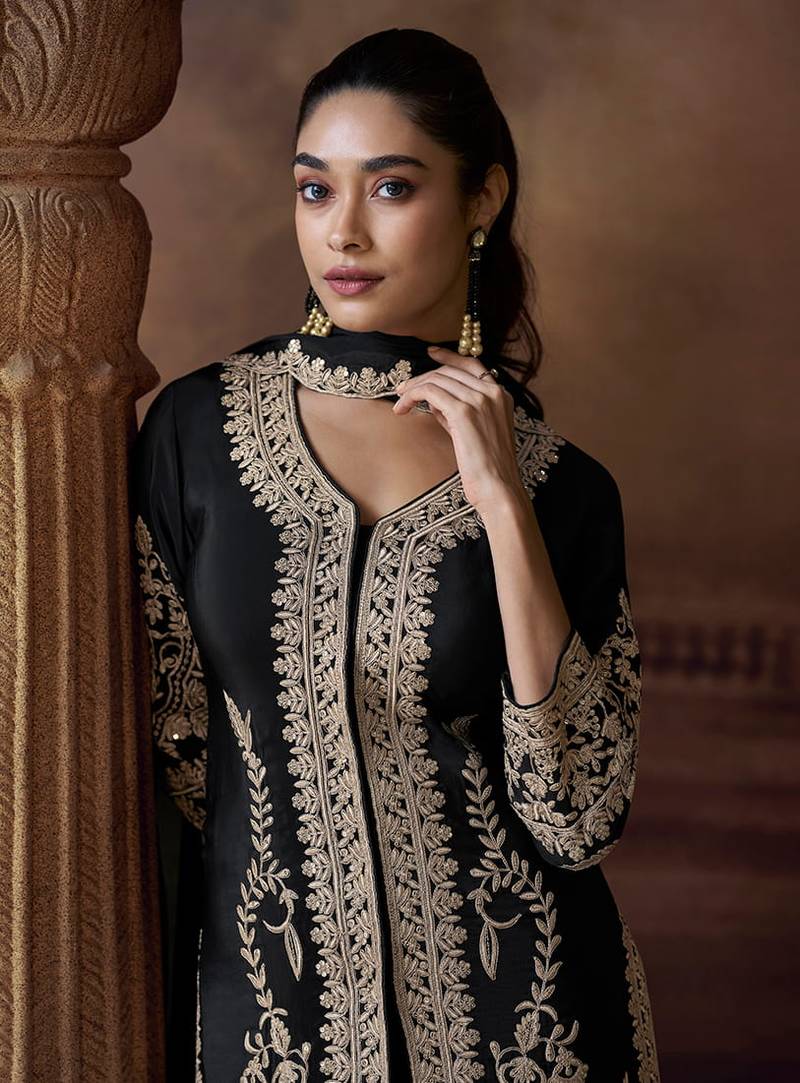 | Product Name | Black Chinon Silk Embroidered Work Suit | |