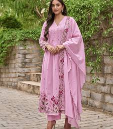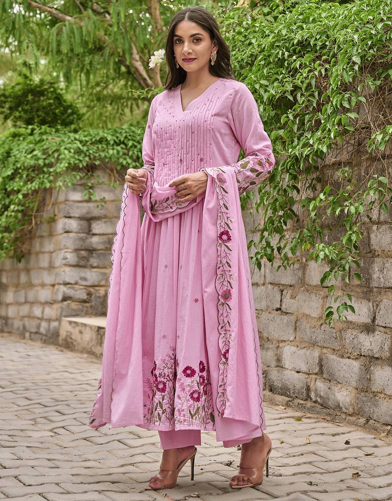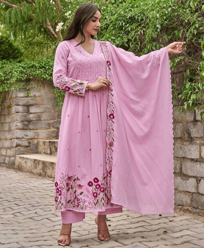 Chanderi silk embroidered pink salwar kameez stitched