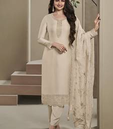 Cream color silk embroidered salwar suit semi stitched