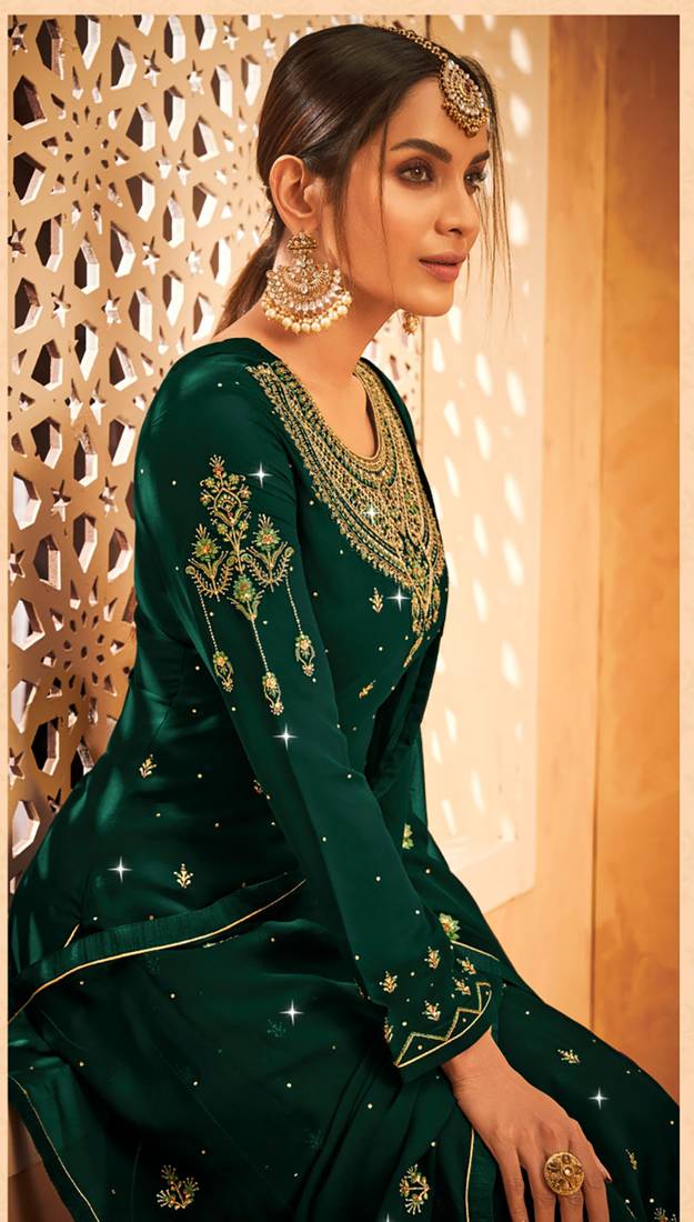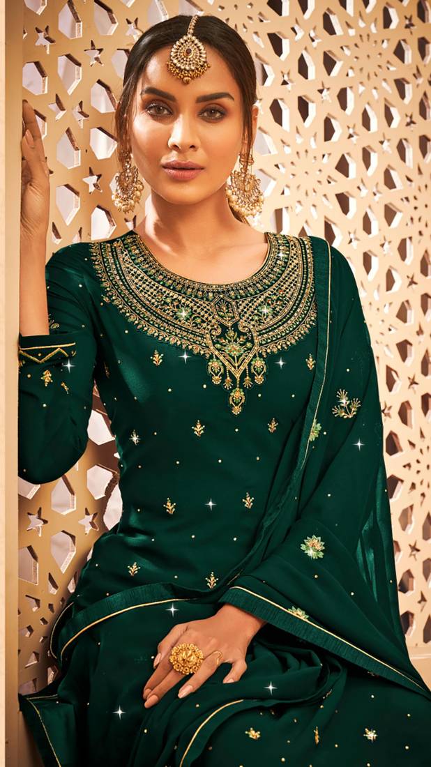 | Product Name | Dark Green Color Georgette Thread Trendy Salwar Kameez | |