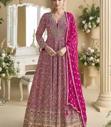 | Product Description | A Festive Dark Pink Georgette Anarkali Featuring Swaroski Work And Embroidery. Styled Withf Ull Sleeves, Keyhole Neckline And A Drawstring Closure, Dupatta ”Ideal For Pooja And Festive Occasions.Note : This Suit Will Be Sttiched Free Size 42" |
