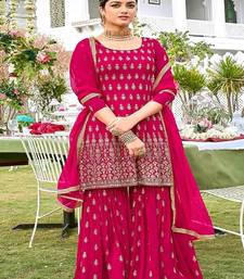 Dark pink georgette embroidery work salwar suit semi stitched