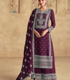 Dark purple georgette with embroidered palazzo suit semi stitched