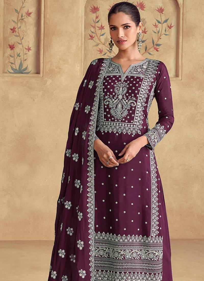 | Product Name | Dark Purple Georgette With Embroidered Palazzo Suit | |