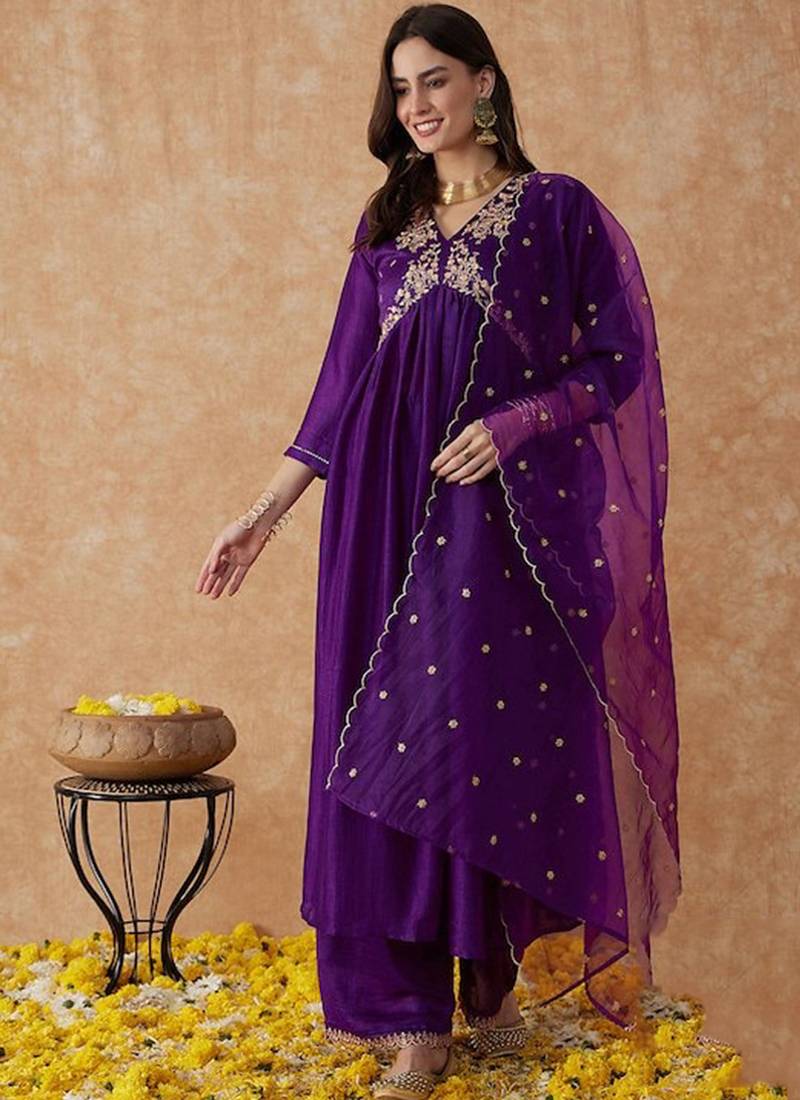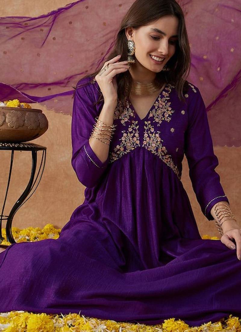 | Product Description | Simple And Refined, This Dark Purple Vischitra Silk Kurta Set Features Tidy Resham Work That Lifts The Surface Without Crowding It. The Organza Dupatta Drape Keeps The Outfit Looking Polished From Day To Night. |