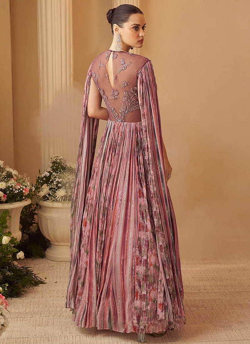 | Product Name | Dusty Pink Chinon Silk Sequins Cape Style Gown Semi Stitched Up To 42" Size | |