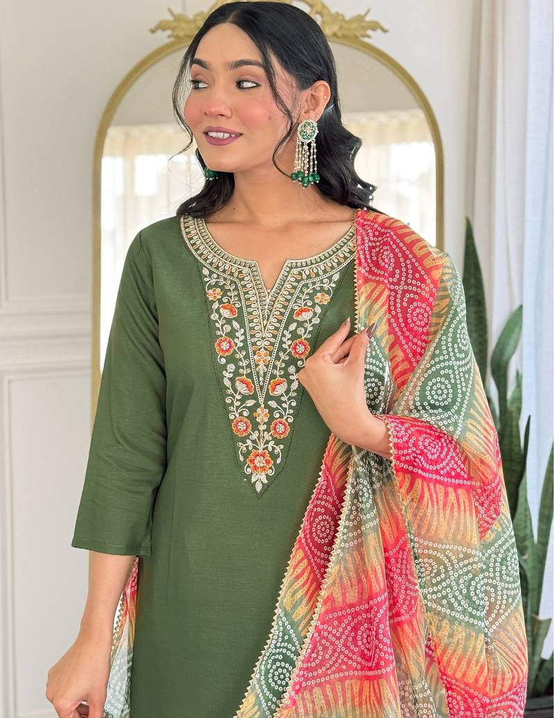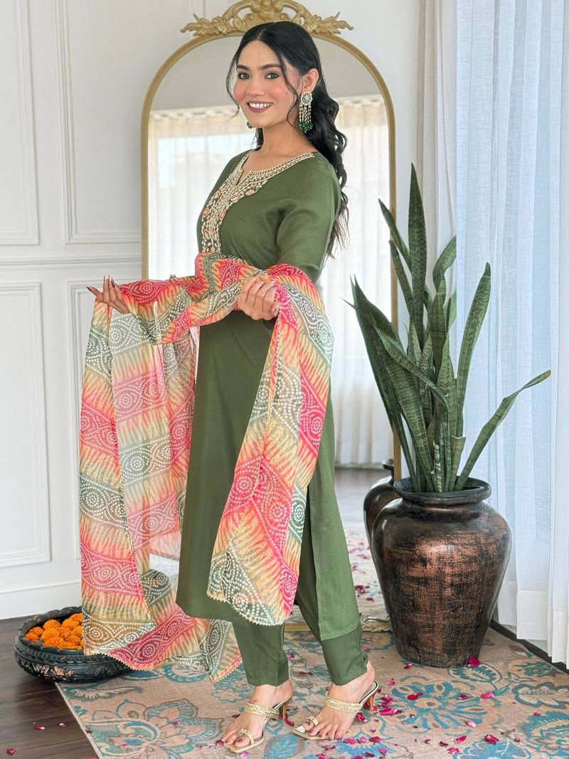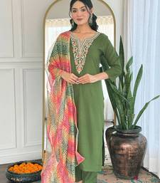 | Product Name | Embroidered Mahendi Green Rayon Salwar Suit For Party | |