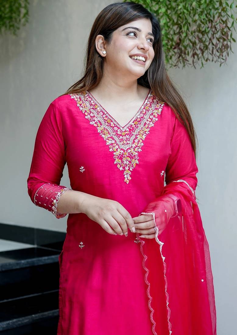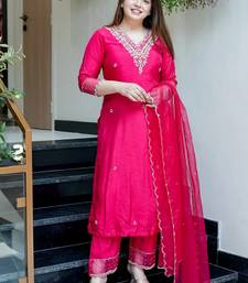 Embroidered rani pink viscose chanderi festival trendy salwar kameez stitched