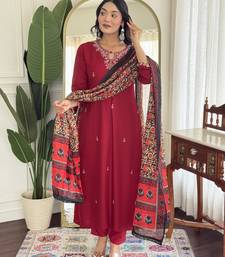 Embroidered rani pink viscose readymade salwar kameez stitched