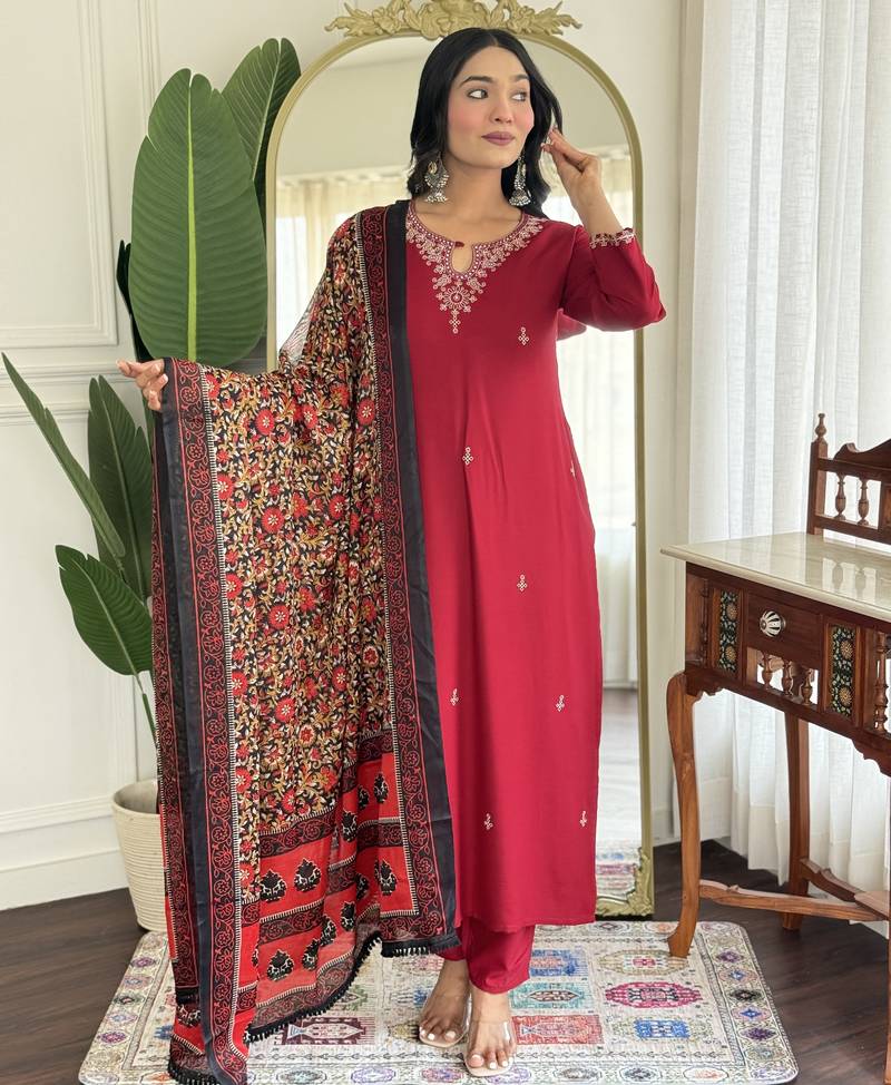 | Product Name | Embroidered Rani Pink Viscose Readymade Salwar Kameez | |