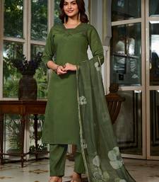 Embroidered work viscose chanderi salwar suit in dark green color stitched