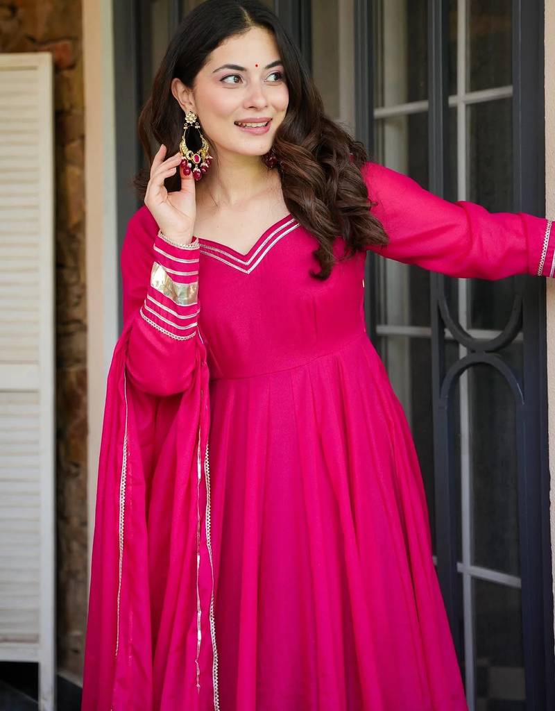 | Product Description | Make Every Moment Shine With This Hot Pink Georgette 3 Piece Set Featuring Graceful Gotta Patti Embroidery. Ideal For Festive Wear, Special Occasions, And Parties, This Stylish Suit Set Promises Both Luxury And Comfort. (Slight Variation In Color, Fabric & Work Is Possible. Model Images Are Only Representative.) |