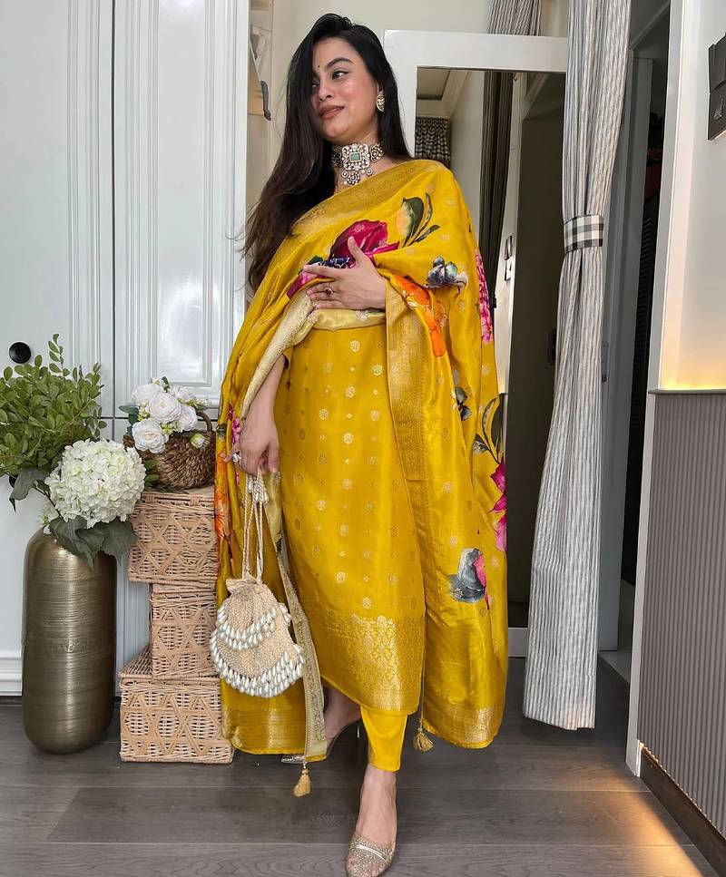 | Product Name | Jacquard Work Mustard Viscose Readymade Salwar Kameez | |