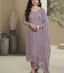 Lavender color silk embroidered salwar suit semi stitched