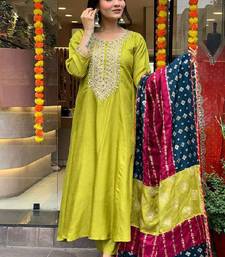 Lemon green color vichose chanderi embroidered anarkali suit stitched