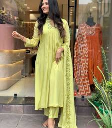 Lemon yellow color viscose chinon embroidered kurta set stitched