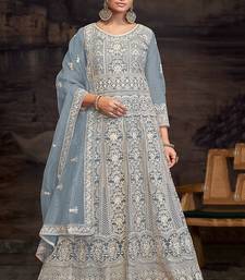 Light blue net embroidered anarkali salwar kameez semi stitched