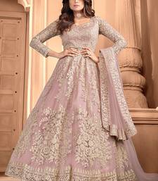 Light pink net with embroidered work anarkali suit semi stitched