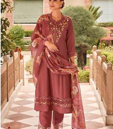 Maroon color muslin fabric embroidered anarkali suit stitched