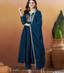 Morpeach vichitra silk designer festive wear kurti pant and duppta with embroidery work stitched