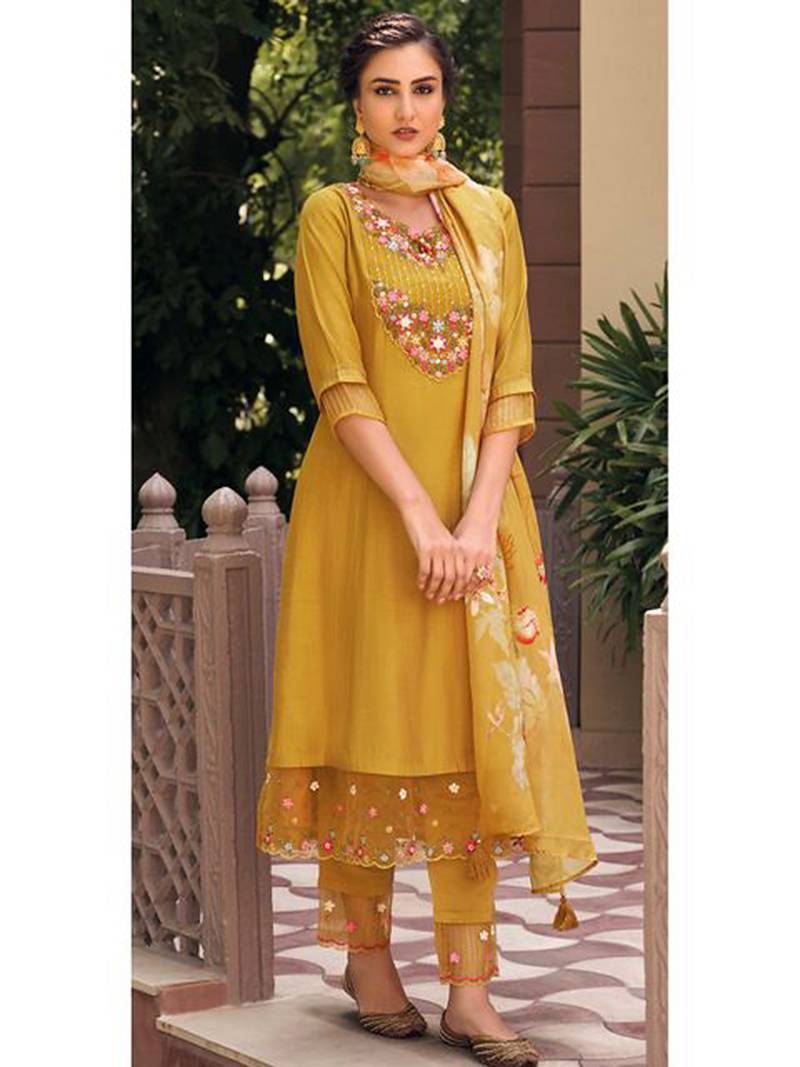 | Product Name | Mustard Color Muslin Fabric Embroidered Anarkali Suit | |